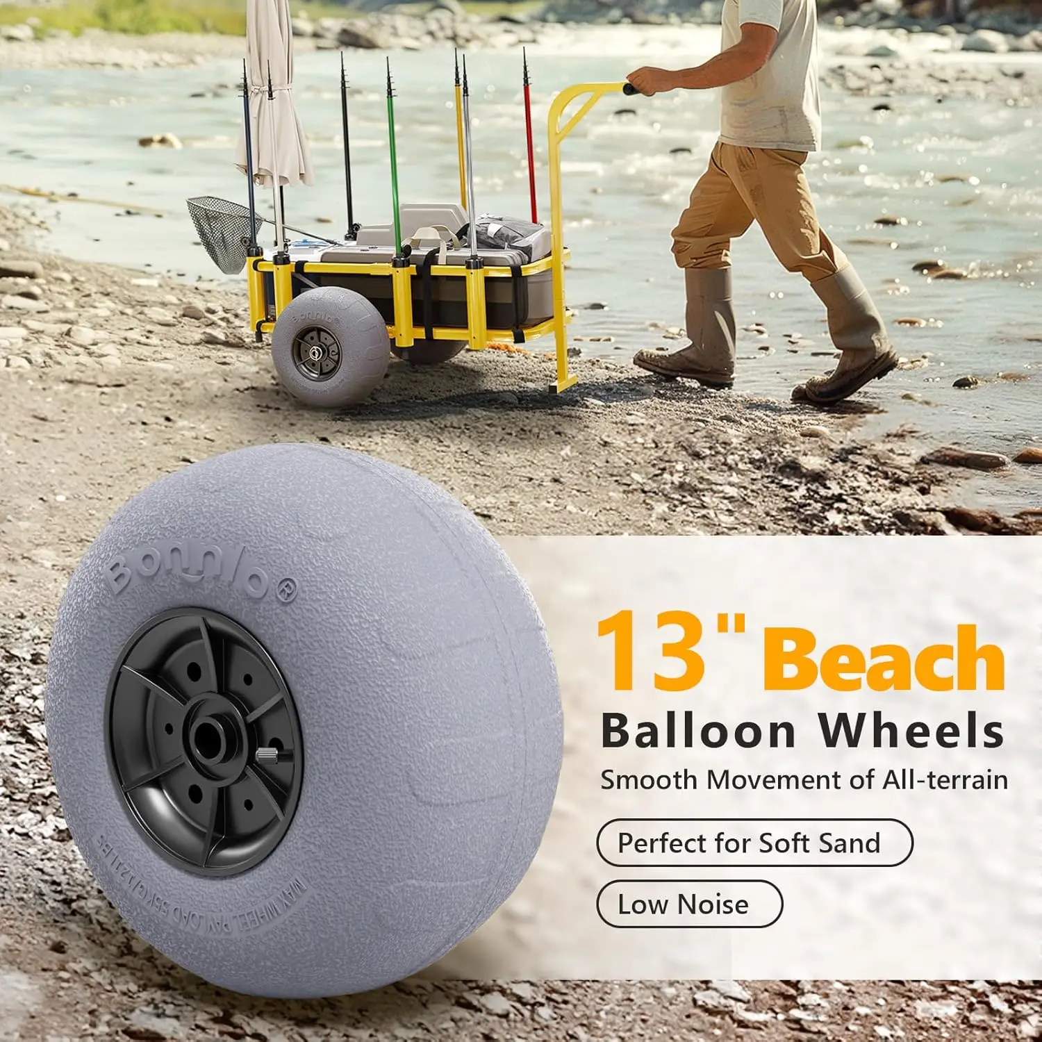 ✔ Large 13″ Balloon Wheels – Smooth over sand, grass, or rough terrain