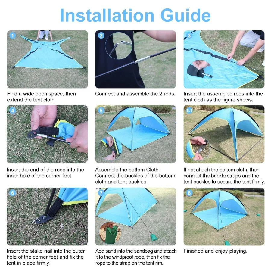 Enjoy sun, sand, and shade with the Beach Tent Outdoor Waterproof Canopy, perfect for 4-6 people. Featuring UPF50+ protection, 3 door openings, and a waterproof design, it’s ideal for beach outings, picnics, and outdoor activities. Lightweight and easy to set up, it comes with a carrying bag for effortless transport.
