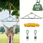 Easily lift and handle large game with the Max To 600 LBS Game Hoist Pulley Lift System. This complete system includes a sturdy gambrel, heavy-duty pulleys, and rope for safe and efficient lifting of deer, elk, or other large game. Perfect for hunting, game processing, and outdoor use.